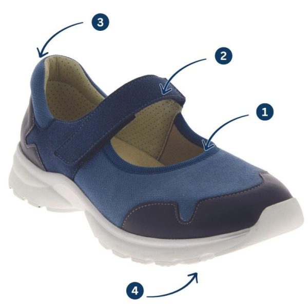 La nouvelle chaussure de détente Melba bleu est parfaite pour vous accompagner dans vos activités extérieures. Ultra souple et au look dynamique, elle est conçue sur une semelle extérieure légère et agrippante pour assurer la sécurité sur tous les sols. Melba s’ouvre très largement et s’ajuste précisément avec sa bride auto-agrippante, cette bride est élastiquée pour éviter la compression des chevilles qui gonflent au cours de la journée. Pour un confort optimal, Melba possède une bordure élastiquée douce au contact de la peau du cou-de-pied et un col matelassé au niveau de la cheville. Melba offre une protection renforcée aux extrémités du pied grâce à un cuir souple au niveau du bout de la chaussure et niveau du talon. La chaussure de détente s’adapte aux hallux valgus grâce à son tissu souple au niveau de la zone latérale intérieure. La Melba est une chaussure facile à chausser et saine avec sa doublure intérieure anti-transpirante, anti-microbienne et thermorégulatrice.