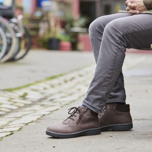 Le bottillon Alaric au grand volume à l’avant-pied pour protéger les orteils fragiles. Ses lacets et son zip permettent un enfilage facile et un réglage précis afin d’adapter la pression sur le pied. Ils facilitent le bon maintien de la cheville, comme la tige montante à l’arrière. Pour maintenir au chaud les pieds fragiles durant l’hiver, le bottillon Alaric est dotée d’une doublure chaude et d’une épaisse semelle pour isoler du froid. Et pour plus de sécurité, la semelle développée est à la fois agrippante, isolante et amortissante.