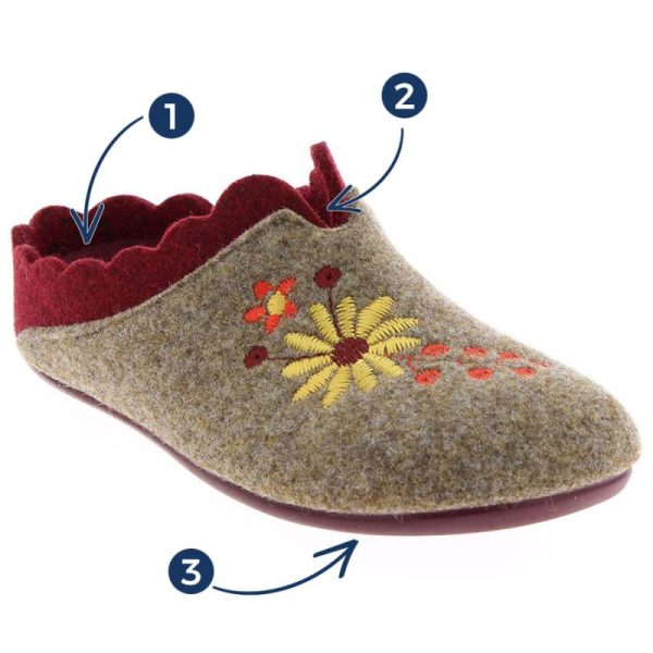 Podowell Chausson Femme GERTRUDE ROUGE | Femme Chaussons Confort Fantaisie