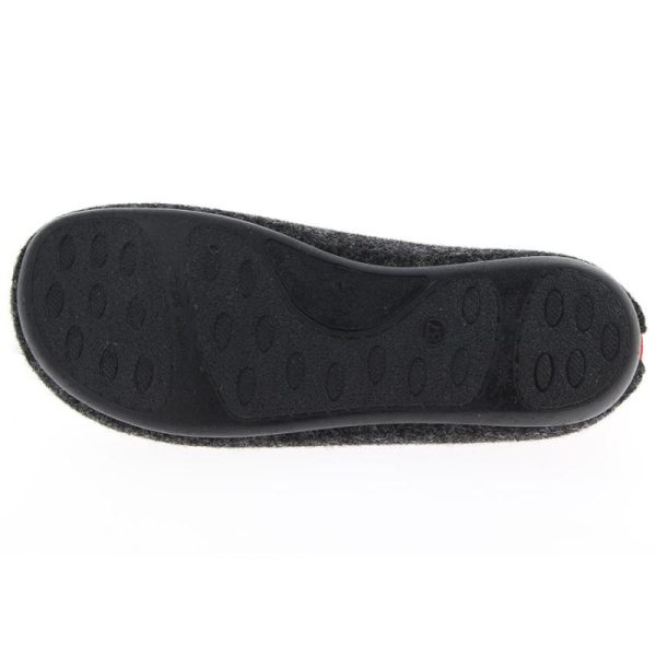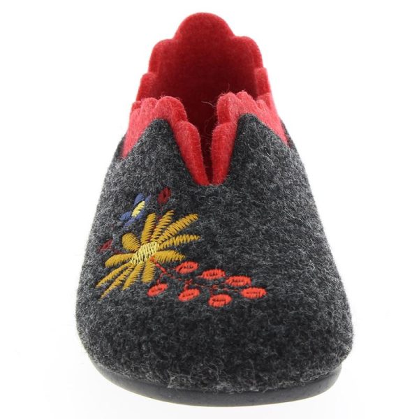 Adapté en cas de fort cou-de-pied, le chausson LUDIVINE comporte une fine broderie sur la laine anthracite.