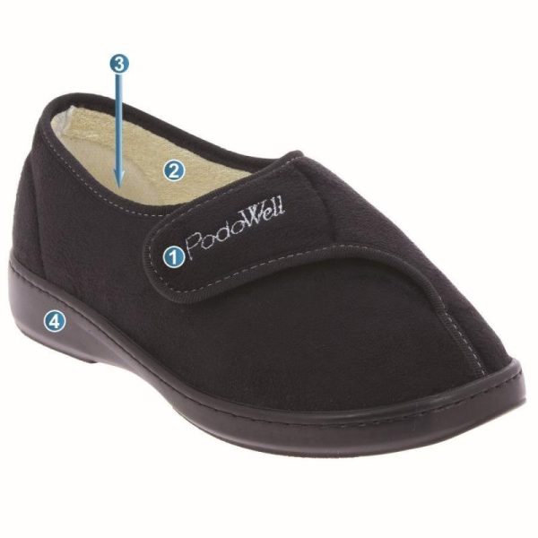 Podowell Chaussons Orthopédiques CHUT AMIRAL Noir | Homme/Femme Chaussons Confort