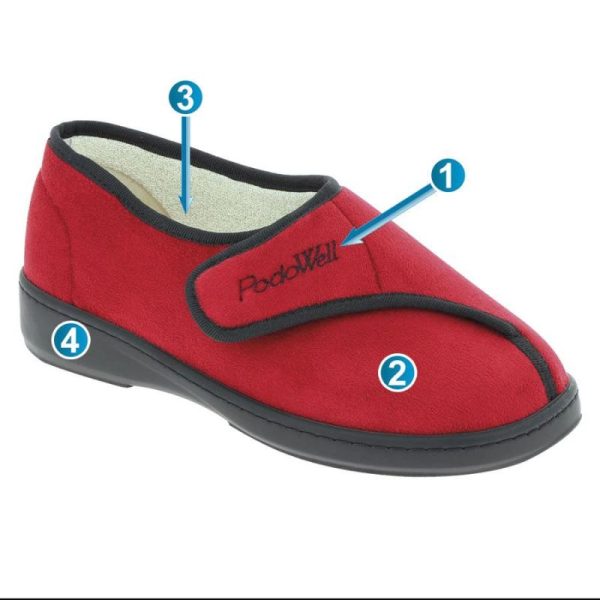 Podowell Chaussons Orthopédiques CHUT AMIRAL Rouge | Homme/Femme Chaussons Confort