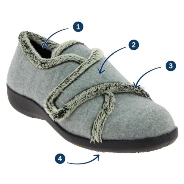 Le chausson orthopédique PLUMETTE est spécialement conçu pour répondre aux besoins des personnes souffrant de diverses pathologies telles que les orteils en griffe ou en marteau, les œdèmes et la métatarsalgie. Conçu pour offrir un confort optimal et soulager les pieds douloureux, ce chausson d’intérieur vous permettra de passer un hiver bien au chaud. Le PLUMETTE se distingue par son tissu chaud et confortable, qui enveloppe délicatement vos pieds, leur procurant une sensation agréable et douillette. Que ce soit pour les soirées au coin du feu ou pour se reposer après une longue journée, ce chausson vous offre un confort optimal tout en maintenant une température idéale pour vos pieds. Ce chausson orthopédique est doté de caractéristiques pratiques qui facilitent son utilisation au quotidien. Une large bride auto-agrippante permet un chaussage facile, ce qui est particulièrement bénéfique pour les personnes ayant des difficultés à se baisser ou à nouer leurs chaussures. Il vous suffit de déplier la bride et de la fixer en position pour obtenir un ajustement sécurisé et personnalisé. La bordure fantaisie du PLUMETTE est non seulement esthétique, mais aussi douce au toucher. Elle évite les frottements et les irritations, offrant ainsi une expérience de port agréable. Vous pouvez donc profiter pleinement du confort sans compromettre le style. Enfin, la semelle du chausson PLUMETTE est conçue pour offrir stabilité et résistance. Elle assure un bon maintien du pied et une adhérence solide sur les sols intérieurs. Vous pouvez vous déplacer en toute confiance sans craindre de glisser ou de trébucher. En résumé, le chausson orthopédique PLUMETTE est le compagnon idéal pour les personnes souffrant d’orteils en griffe ou en marteau, d’œdèmes ou de métatarsalgie. Grâce à son tissu chaud et confortable, sa large bride auto-agrippante, sa bordure fantaisie douce et sa semelle stable et résistante, ce chausson vous offre un confort optimal et une facilité d’utilisation tout en vous gardant au chaud pendant l’hiver.