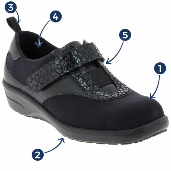 Moderne et discrète, SIANA est conçue dans une matière innovante à la fois extensible et déperlante. Associée à la semelle WetGrip® stable et antidérapante, cette chaussure est adaptée aux personnes souffrant d’hallux valgus ou d’orteils en griffe. Elle apportera un grand confort même par temps de pluie. La semelle intérieure et l’intercalaire amovible permettent l’utilisation d’une semelle orthopédique même épaisse.