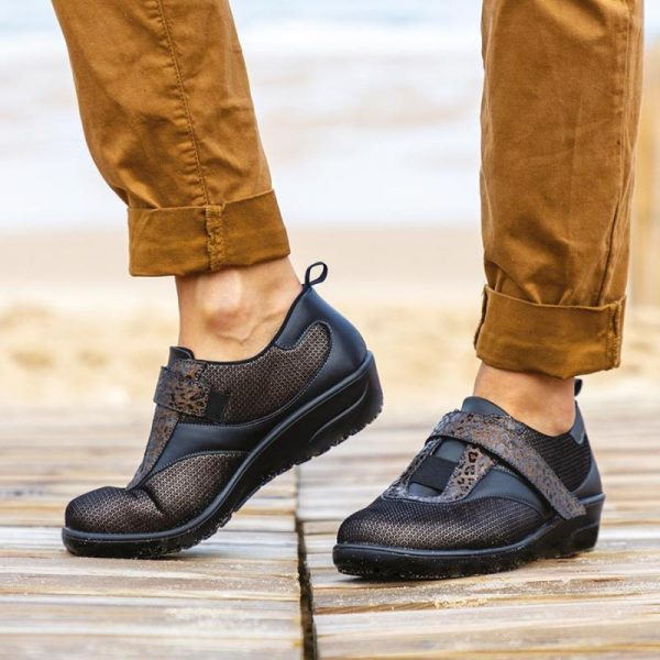 Moderne et discrète, cette chaussure de ville est conçue pour offrir le meilleur confort à des pieds fragiles ou déformés. La semelle WetGrip® légère et antidérapante, étudiée pour un usage extérieur offre davantage de sécurité notamment sur sol mouillé. Disposant d’une semelle intérieure et d’un intercalaire amovible, elle pourra s’adapter au volume du pied et permet l’utilisation de semelle orthopédique sur mesure.
