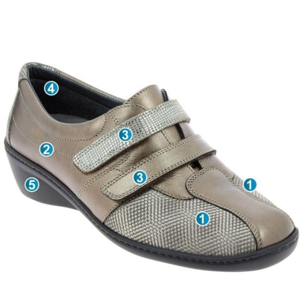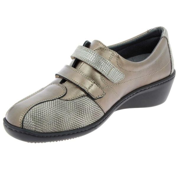 Cette chaussure de ville au style élégant et féminin s’enfile par un large cou-de-pied et se règle de façon précise grâce à une double bride réglable. Une double zone extensible apporte le confort nécessaire à des pieds déformés et douloureux, qui seront confortablement maintenus et protégés par une tige en cuir souple. Avec une doublure Onsteam® 100% respirante et antibactérienne, ce modèle pourra garder une hygiène impeccable au quotidien. La première de cuir amovible apporte du confort au contact du pied et peut être remplacée par une semelle sur mesure.