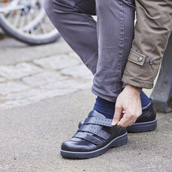 La chaussure de ville Alphonse, s’adapte aux pieds sensibles, notamment en cas d’oedème grâce à ses 3 brides larges ainsi que son grand volume à l’avant-pied. Sa semelle intérieure amovible, permet d’y ajouter une semelle orthopédique adaptée. Pour un maintien confortable de la cheville, la chaussure mixte Alphonse est dotée d’un col matelassé.