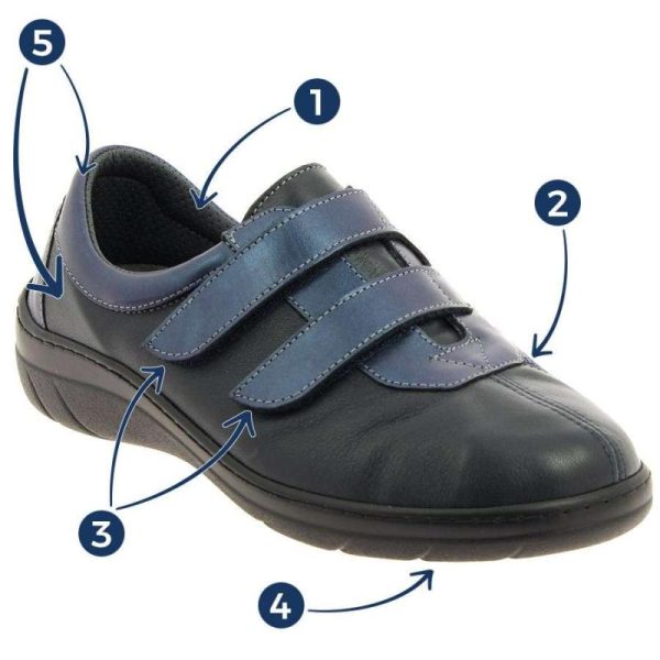 Ce derby s’adapte parfaitement aux pieds sensibles grâce à une tige en cuir très souple et une zone extensible « hallux valgus ». Sa doublure microfibre Onsteam® est 100% respirante et a un effet thermorégulateur et anti-humidité pour confort par tous les temps. Très féminine, elle est facile et rapide à chausser aves ses 2 scratchs. Sa semelle légèrement compenssée et très stable comprend 2 pastilles qui assurent confort et sécurité à chaque pas.
