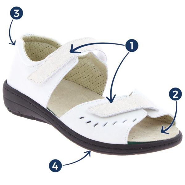 La sandale orthopédique Gaïa écru est très féminine avec ses brides irisées. Elle convient aux personnes atteintes d’oedèmes ou de métatarsalgie et maintient parfaitement la cheville avec sa bride élastiquée.