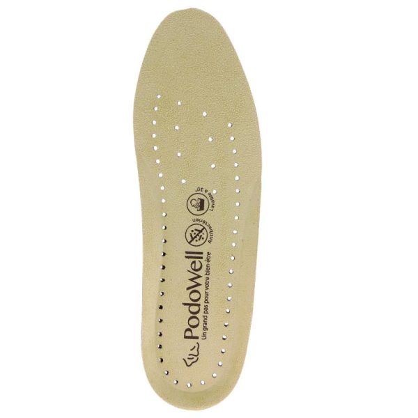 Semelle amovible sur mousse amortissante pour chaussures Podowell. Traitée antibactérienne et perforée pour une circulation optimale de l’air et une évacuation rapide de l’humidité. Compatible avec les modèles : LALY, LANA